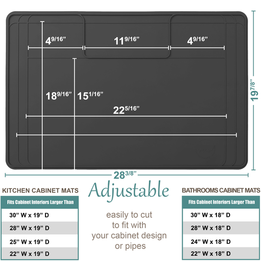 The Original Under Sink Mat - Adjustable Silicone mat, Waterproof Under The Sink Bathroom Vanity Mat - 28" x 19" or smaller