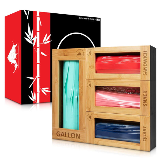 Ziploc Bag Organizer Gift Set - Ziplock Bamboo Kitchen Food Storage Bags Holder + Bamboo Cellphone Stand Holder