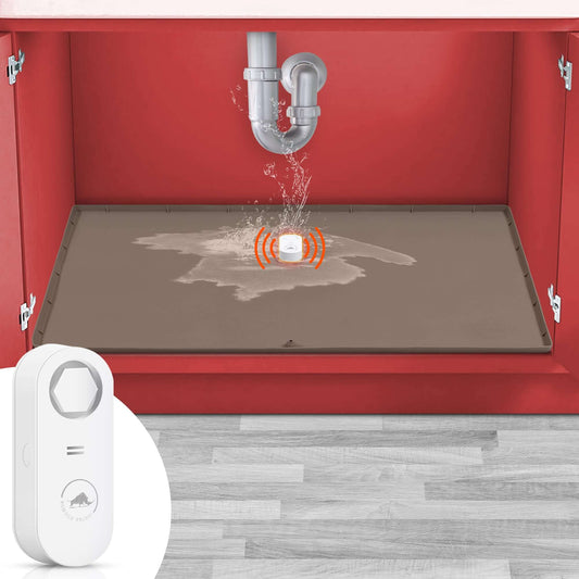 Waterproof Under Sink Mat + Leak detector, Kitchen Cabinet Shelf Protector, Under Kitchen Sink Drip Tray Liner with Drain Hole 34" x 22"