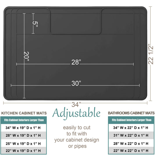 The Original Under Sink Mat - Silicone Waterproof mat, Adjustable, Kitchen cabinet liner - 34" x 22" or smaller